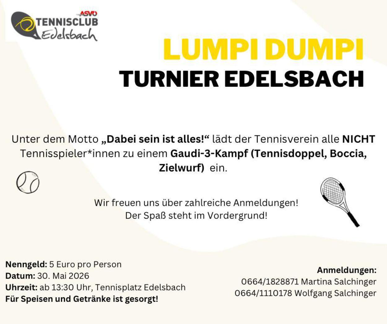 Das mittlerweile traditionelle LUMPI DUMPI TURNIER findet auch heuer wieder statt..